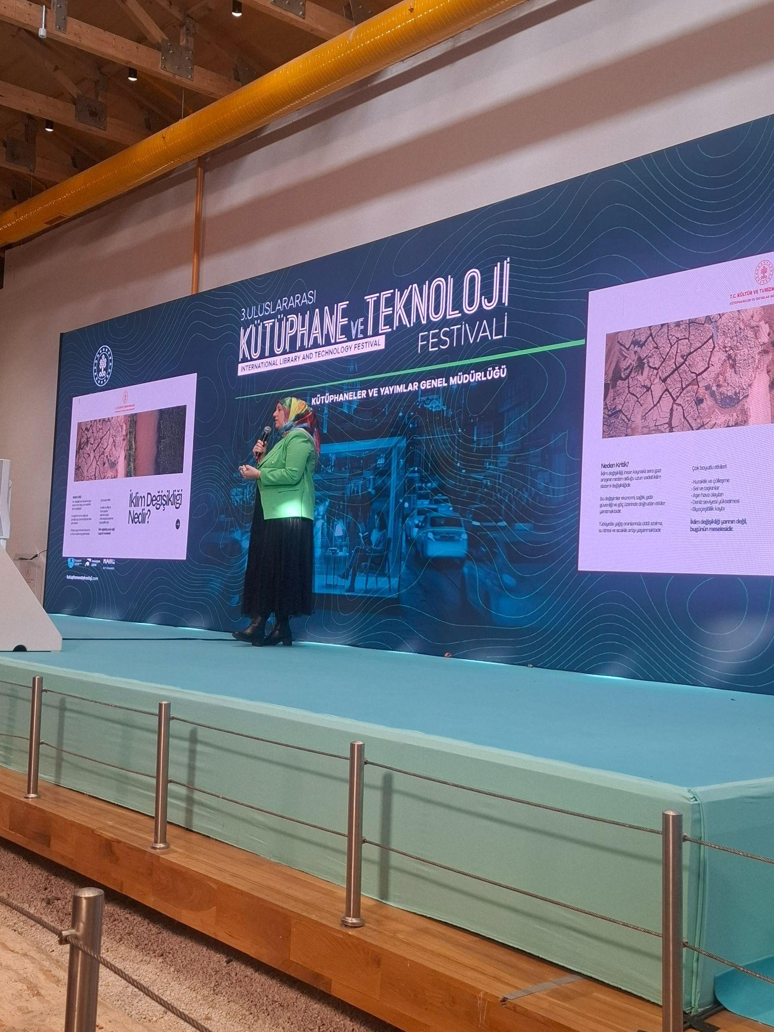Festivalin benim için en özel bölümlerinden biri ise kesinlikle Merve Yavuzdemir’in “İklim Değişikliği ve Kütüphaneler” başlık mesleki yetkinlik programıydı. Sadece ele alınan konunun hayati önemiyle değil, aynı zamanda Merve Hanım ve ekibinin biz gençlere yaklaşımıyla da hafızama kazınan bir oturum oldu. Merve Hanım’ın iklim gerçeklerini aktarması, ülkemizden yeşil kütüphane örnekleri göstererek yapmış olduğu konuşması ve aktardığı vizyon, geleceğin profesyonelleri olarak bizlere büyük bir motivasyon sağladı.